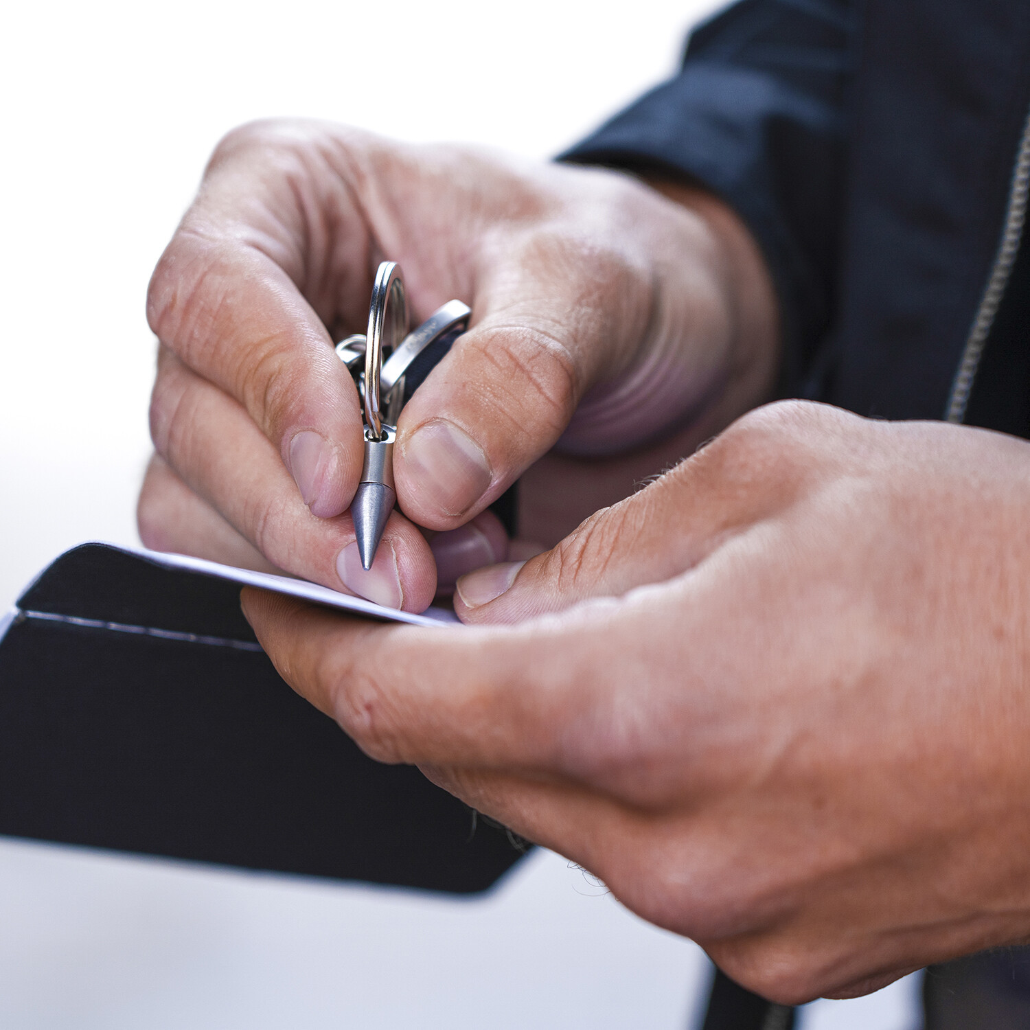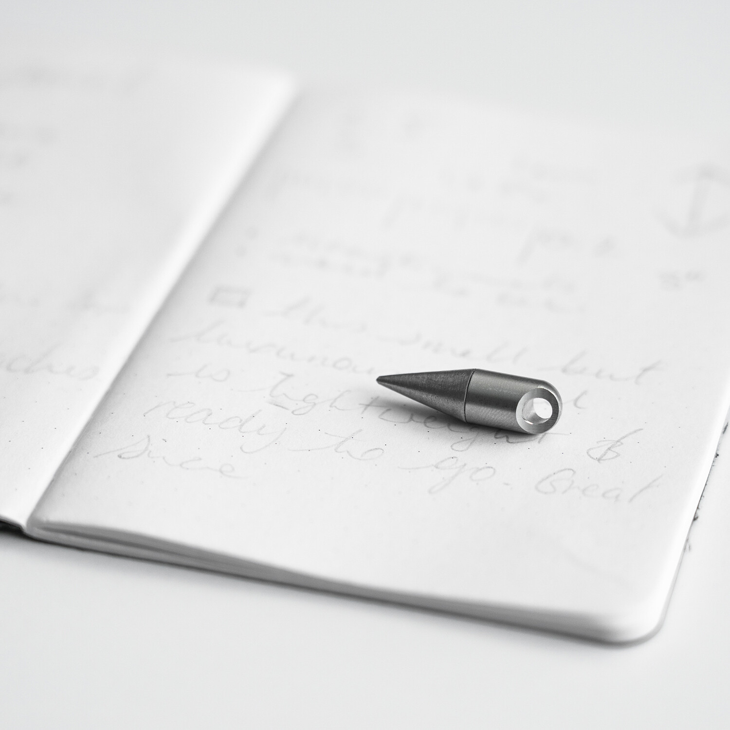 This teeny tiny ingenious invention was designed with longevity and utility in mind. Unlike a pen that requires ink, or a pencil with graphite, the ForeverPen is made from a non-toxic silver composite that writes without actually writing. The mark it leaves behind is permanent and compatible with standard paper so you can use it to jot down a quick note, mark a measurement, and even dive with it to write underwater! Precision milled down to the millimeter, the body is surrounded by high-quality titanium so it's comfortable in your hand. It's finished with a hole at the top to attach to your keys or carabiner so it's always at the ready when you need it.