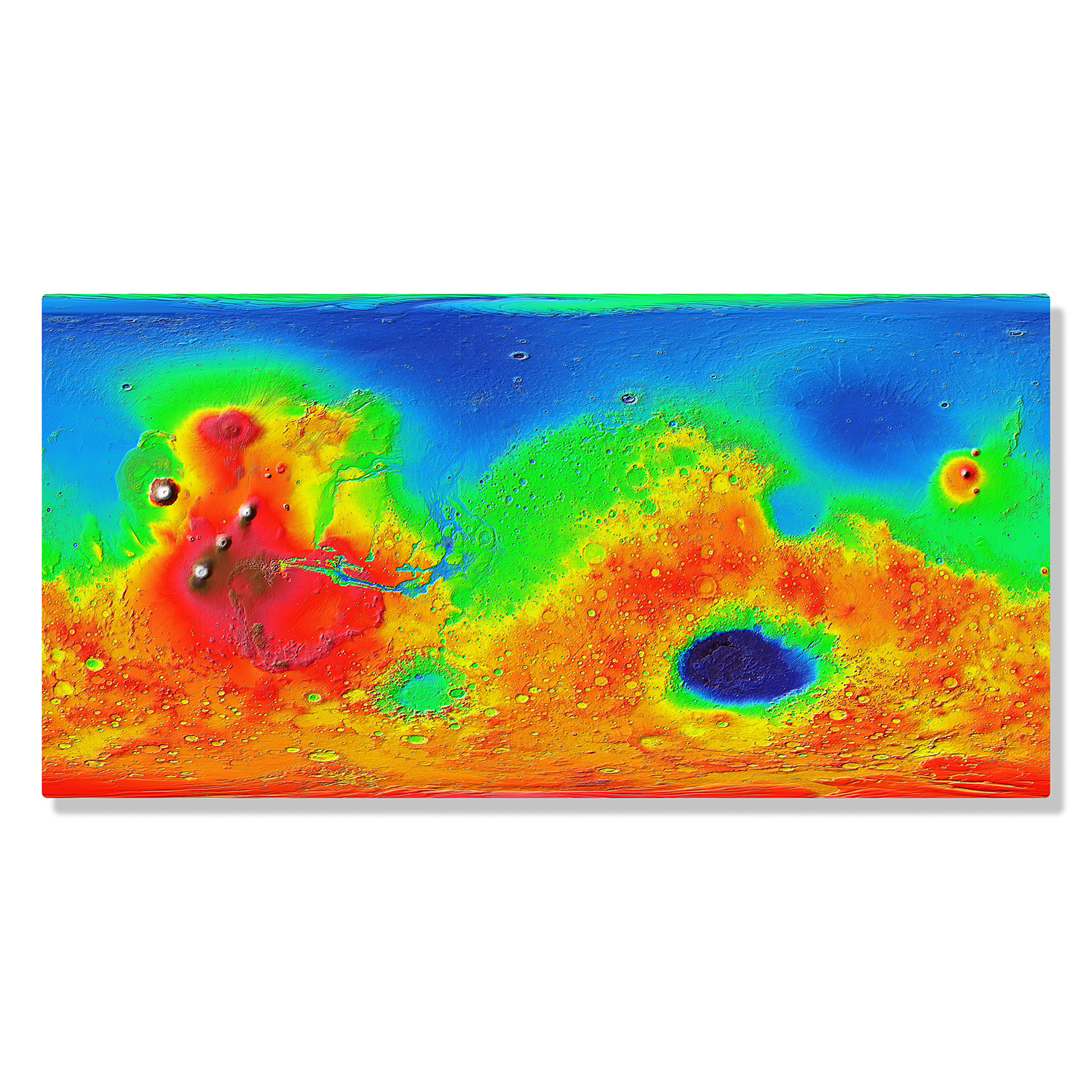 Enjoy the beauty and wonder of a new planet with this high-gloss aluminum Mars print. Each piece comes with an engraved panel on the back that describes details of the image being portrayed, including the exact coordinates, local mars time at the moment of capture, and the instrument used. Add it to your space for an otherworldly touch.