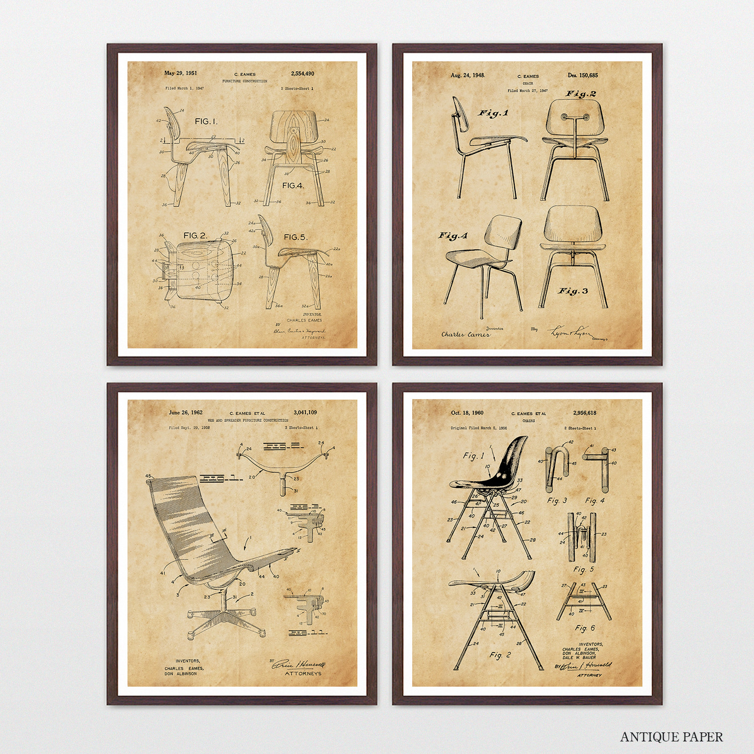 Eames Chairs Patent Collection // 4 Print Set // Antique Paper
