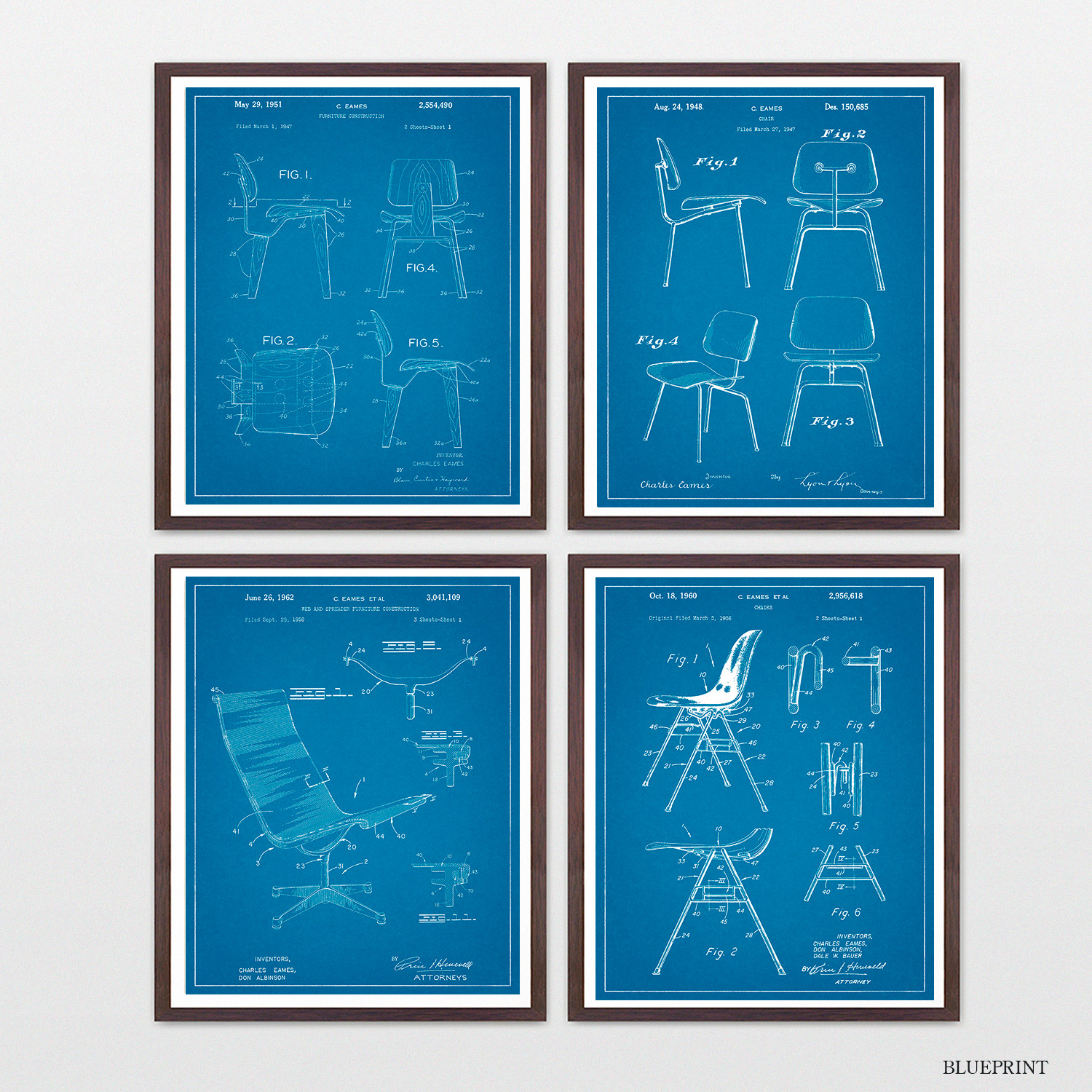 Eames Chairs Patent Collection // 4 Print Set // Blueprint