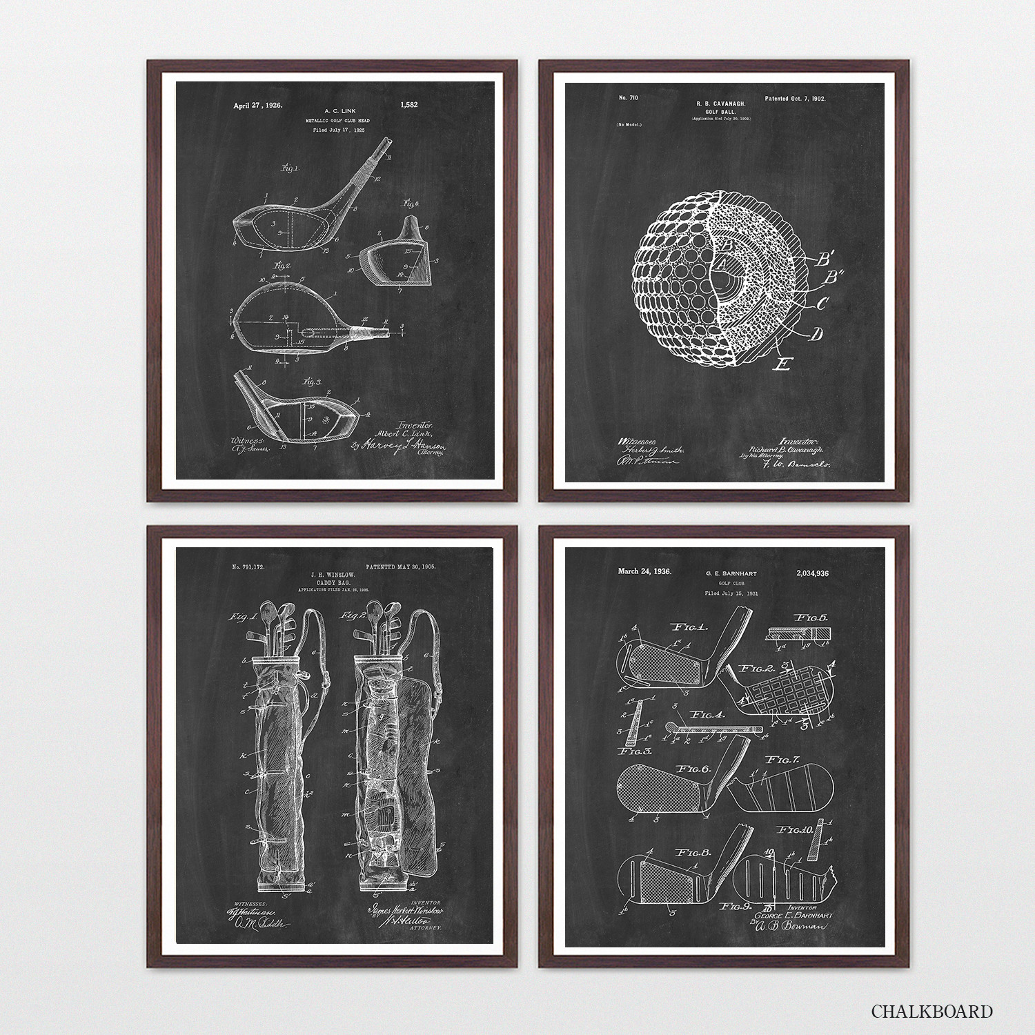 Golf Patent Collection // 4 Print Set // Chalkboard
