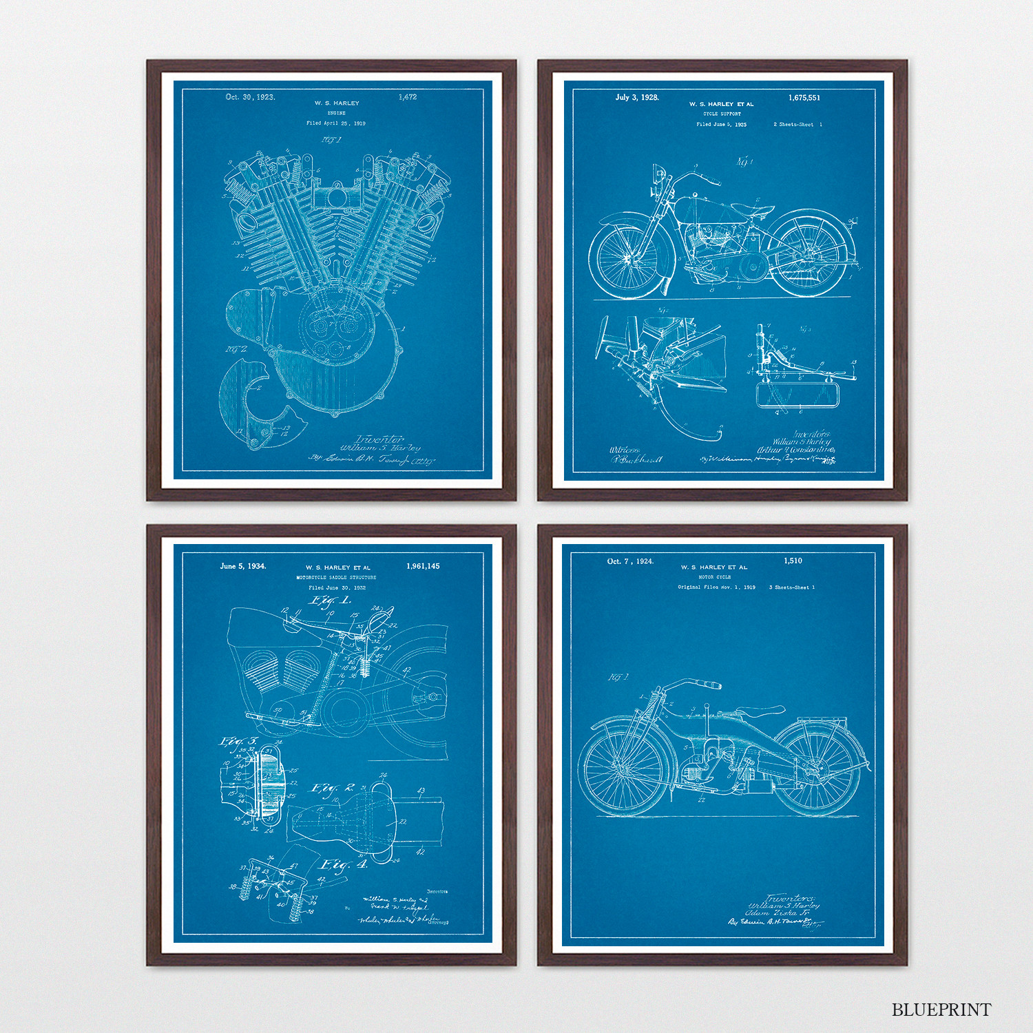 Harley Davidson Patent Collection // 4 Print Set // Blueprint