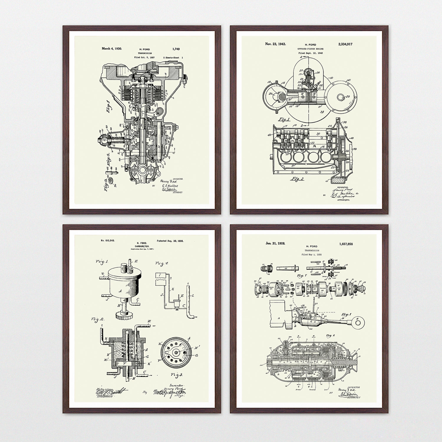 Henry Ford Patent Collection // 4 Print Set // Warm Toned