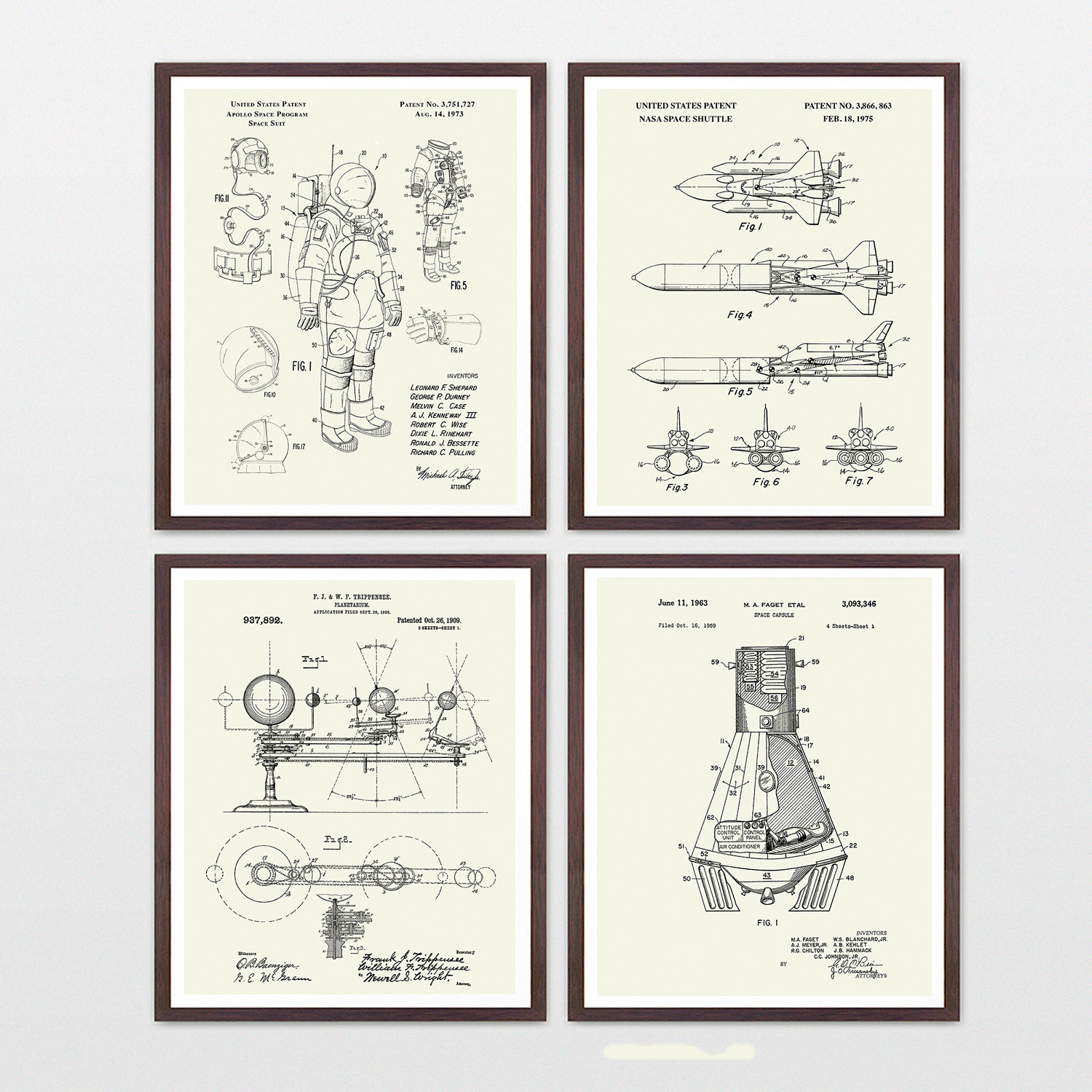 This set of 4 space-related patents make the perfect decor for any home or office. Done on heavyweight matte paper with archival pigment, you can set these pieces in dynamic, grouped arrangements or spread them throughout your home.