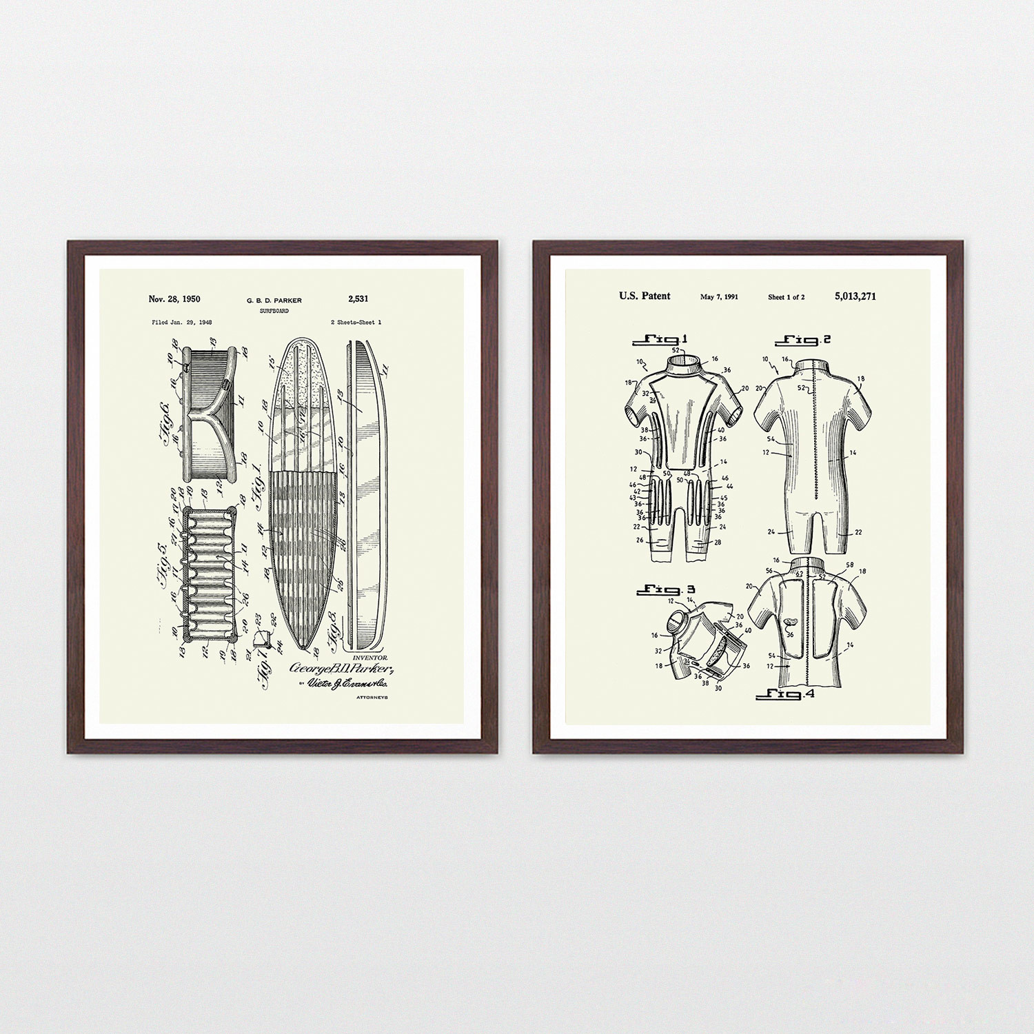 Surfing Patent Art Collection // 2 Print Set // Warm Toned