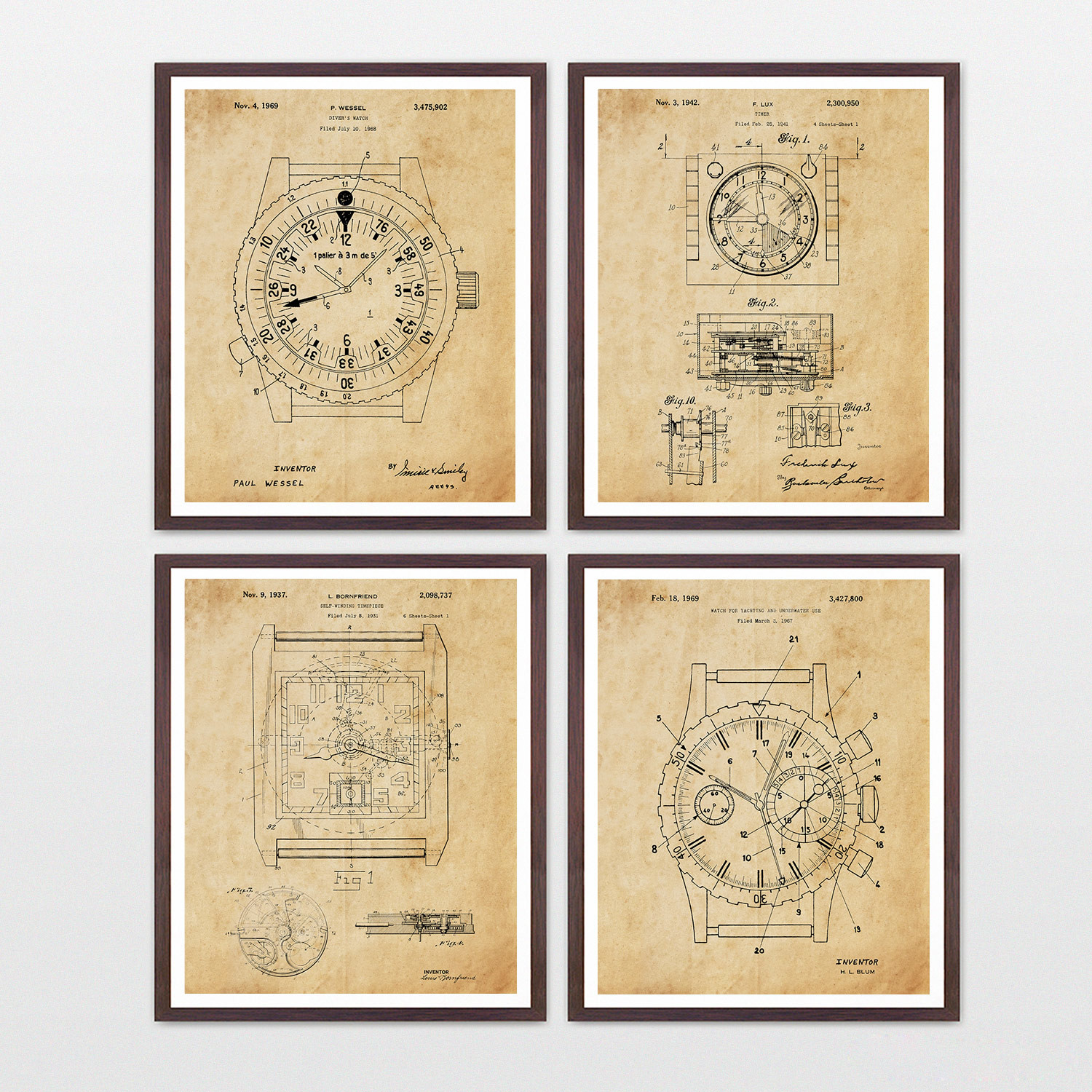 Rolex Watches Patent Collection // 4 Print Set // Antique Paper