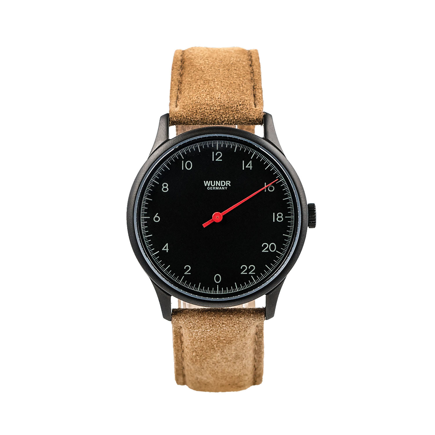 Do we nowadays still need a watch? We are surrounded with smartphones and other devices, which show the exact time. But our answer is yes. Because we think that our watch is an accessory that we don't want to miss. Wundrwatch is your daily companion which allows you to see the entire day in one view and experience time in its very natural state. This gives you a really relaxing feeling of time. A day with Wundrwatch starts at 0, like the rising of the sun, the hand raises until 12 am to its highest point. After wearing the watch for a while, you will be aware that it’s a much more natural way of visualizing where you are in your day. For our watch we've only used high quality materials. Wundrwatch has a Swiss movement and is waterproof up to 100 m. The case is made of stainless steel and the lens is made of non-reflecting, extra-hardened mineral glass.