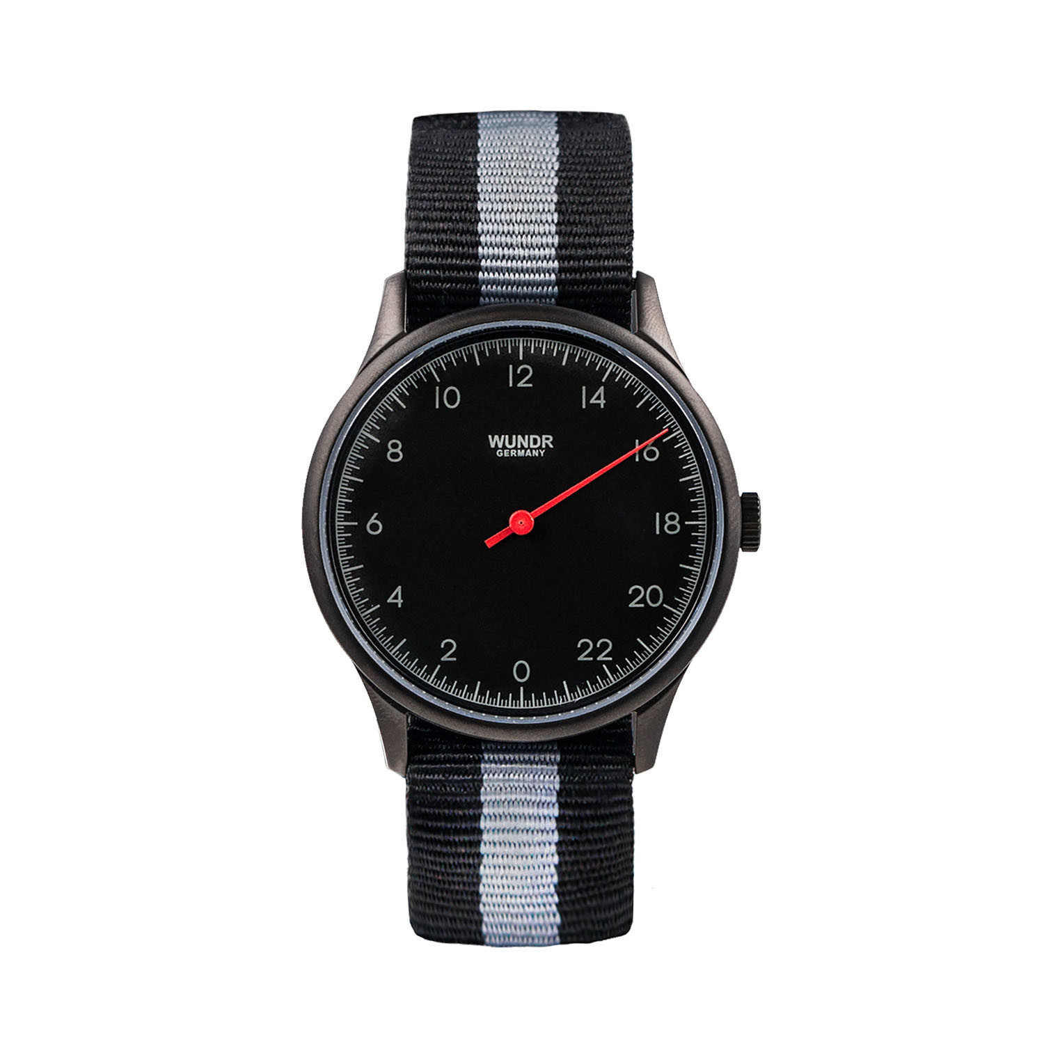 Do we nowadays still need a watch? We are surrounded with smartphones and other devices, which show the exact time. But our answer is yes. Because we think that our watch is an accessory that we don't want to miss. Wundrwatch is your daily companion which allows you to see the entire day in one view and experience time in its very natural state. This gives you a really relaxing feeling of time. A day with Wundrwatch starts at 0, like the rising of the sun, the hand raises until 12 am to its highest point. After wearing the watch for a while, you will be aware that it’s a much more natural way of visualizing where you are in your day. For our watch we've only used high quality materials. Wundrwatch has a Swiss movement and is waterproof up to 100 m. The case is made of stainless steel and the lens is made of non-reflecting, extra-hardened mineral glass.