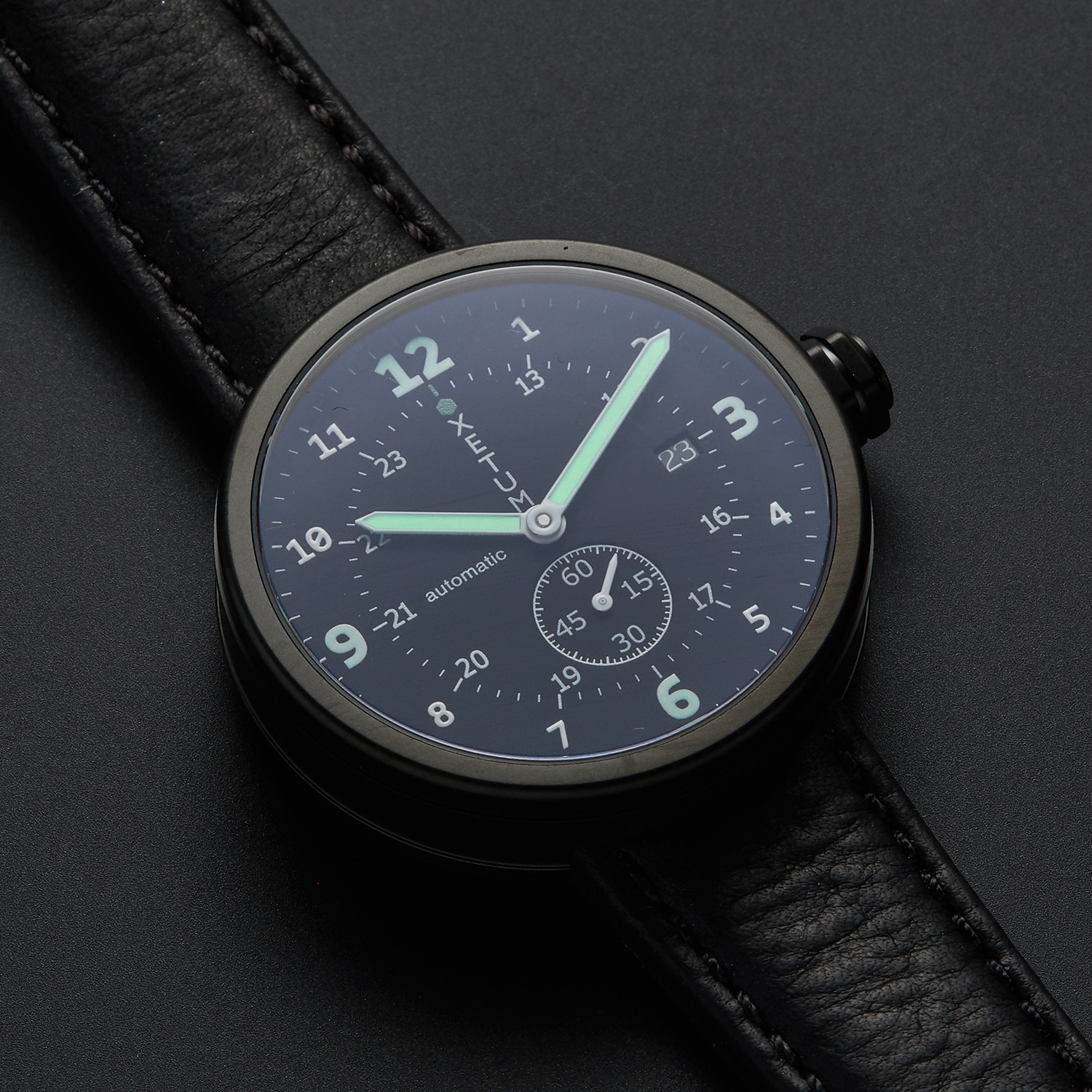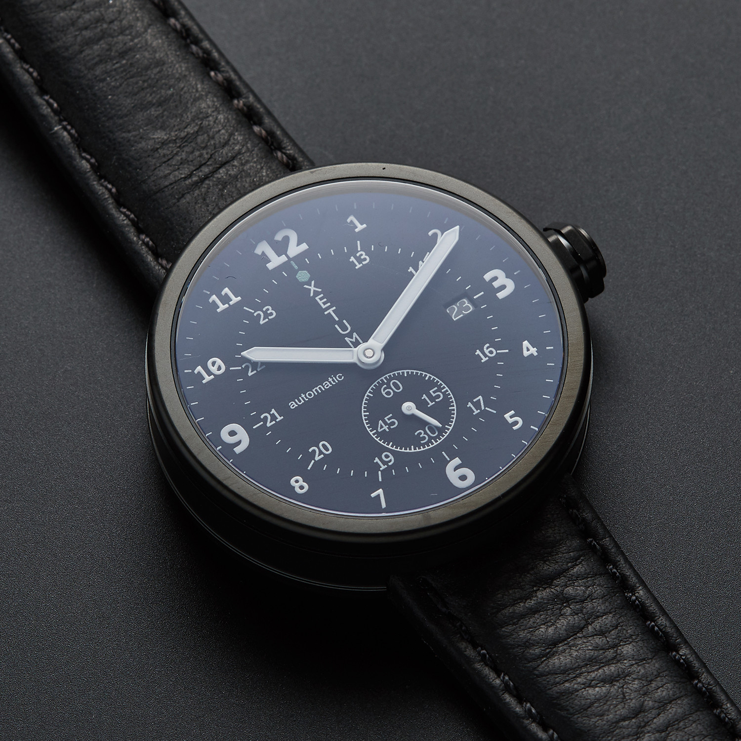 The Tyndall men's Swiss automatic watch blends modern aesthetics with instrument-style functionality. Based around a Swiss automatic watch movement, the Tyndall seamlessly integrates features such as 24H indicators and a small second subdial into Xetum’s signature lugless case.