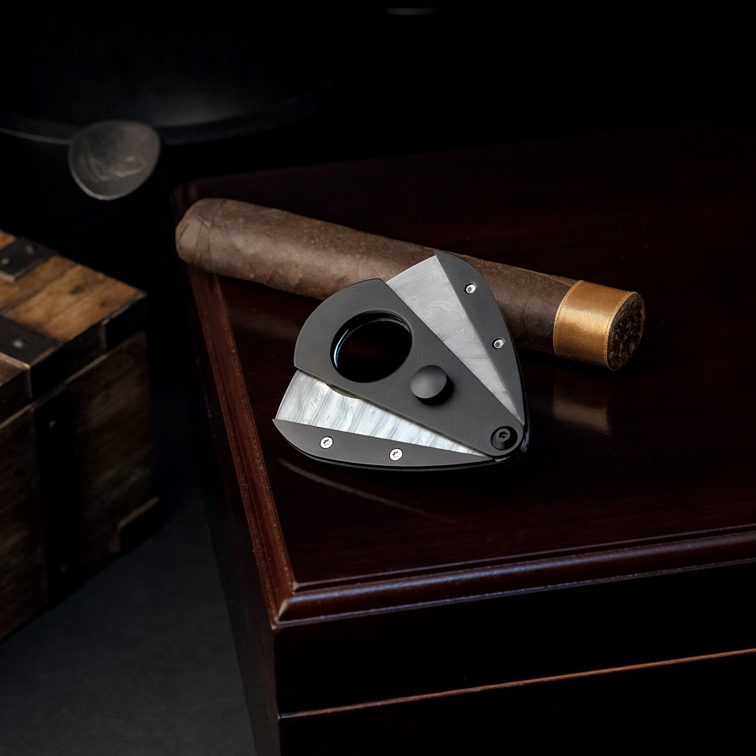 To celebrate 20 years of the Xi cutter, founder’s Kurt Van Keppel and Scott Almsberger have designed a limited edition cutter for the ultimate collector, the Xi3 Damascus. Brushed, stainless steel body and wings are paired with hand-forged stainless Damascus steel blades by the world-renowned Mike Norris in “Gator Skin” Damascus Pattern.