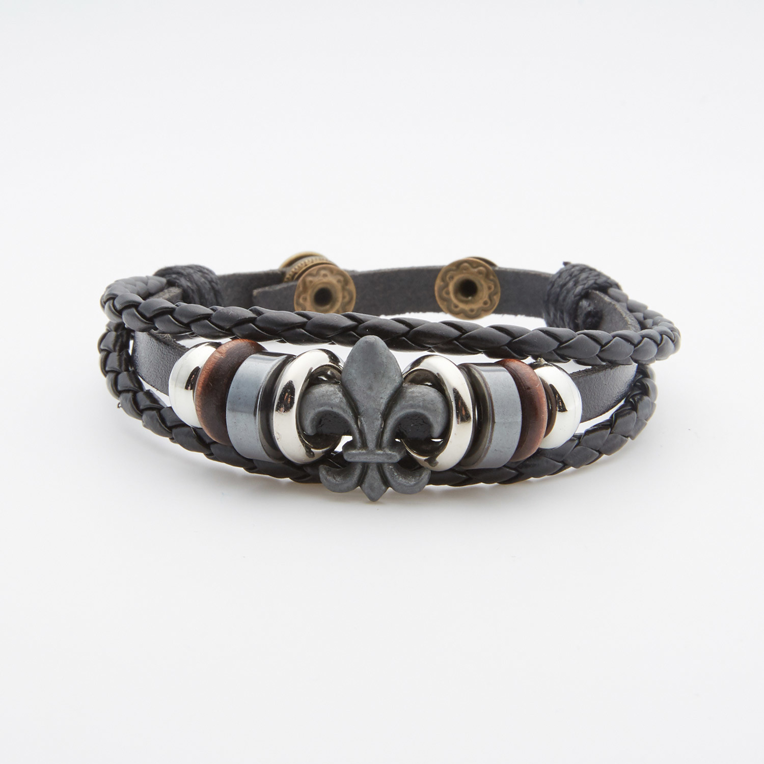 Fleur De Lis Three Row Braided Bracelet // Black