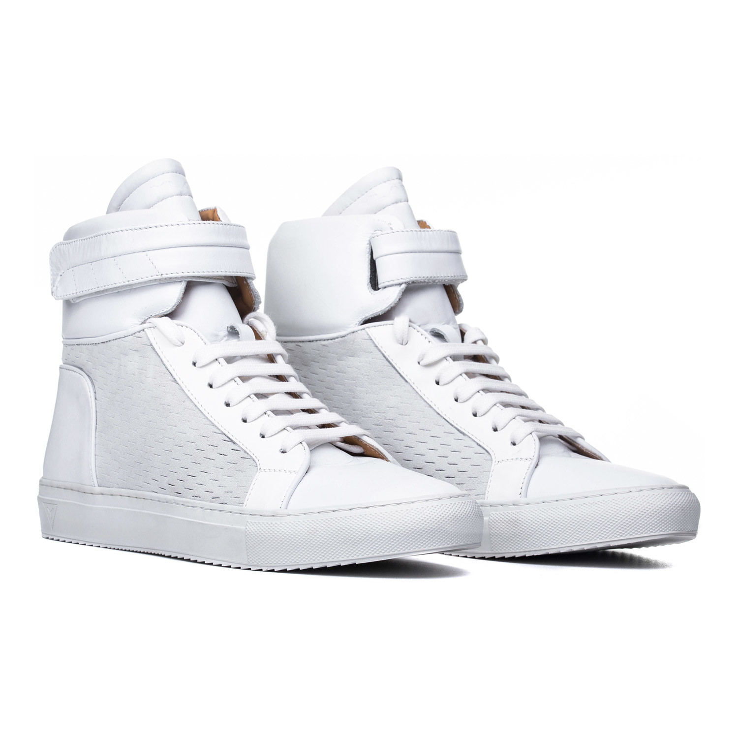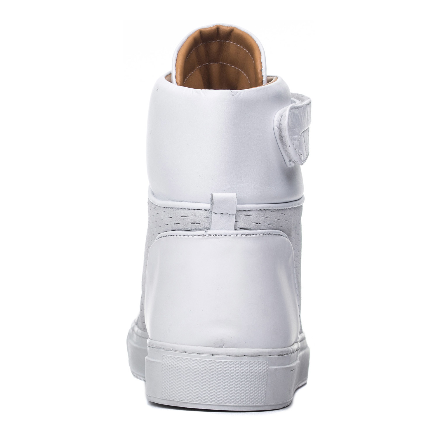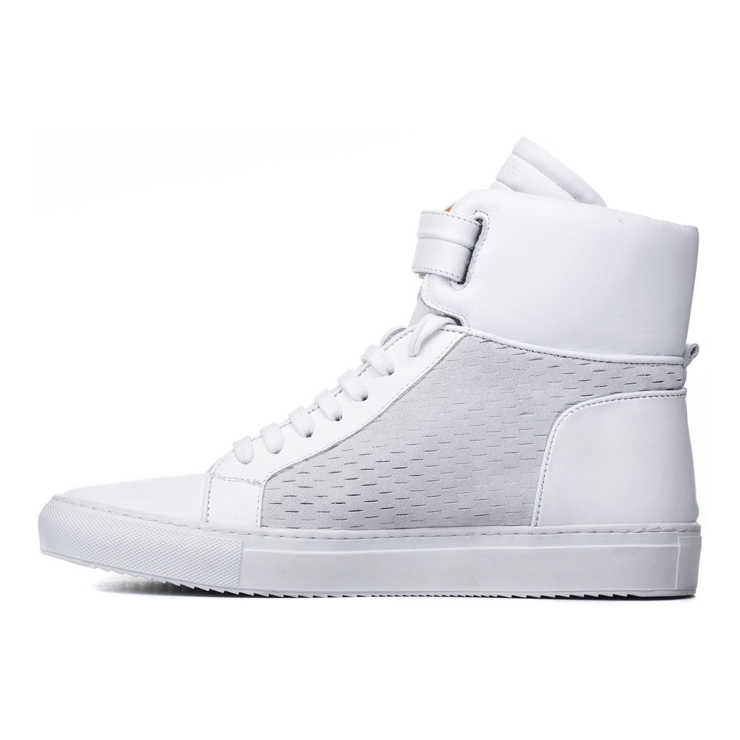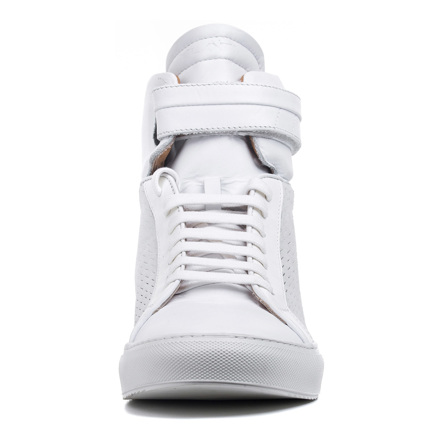 The Amalfi High Top is a street-style ready shoe that makes a statement. With a velcro strap across the extra-high tongue and contrast trimming, it's a statement all its own.