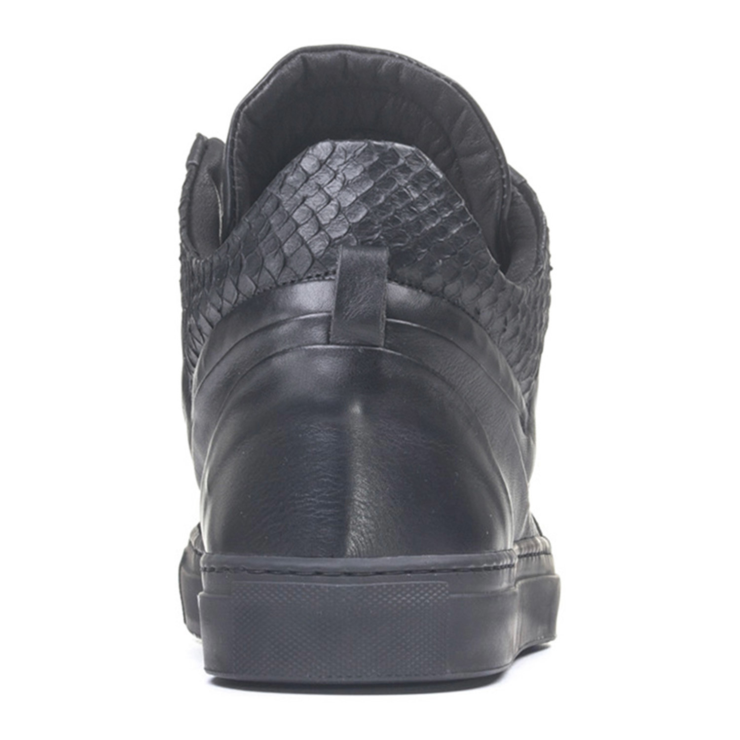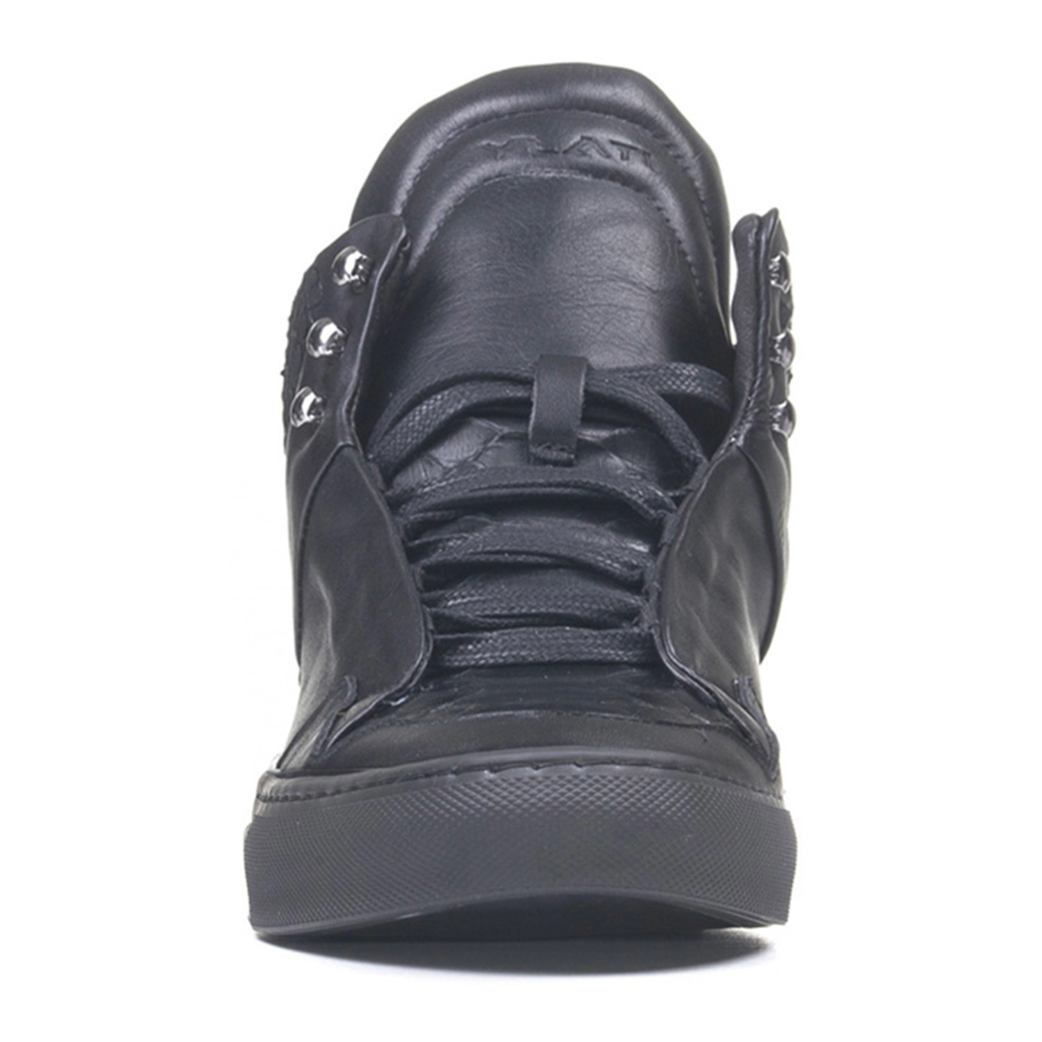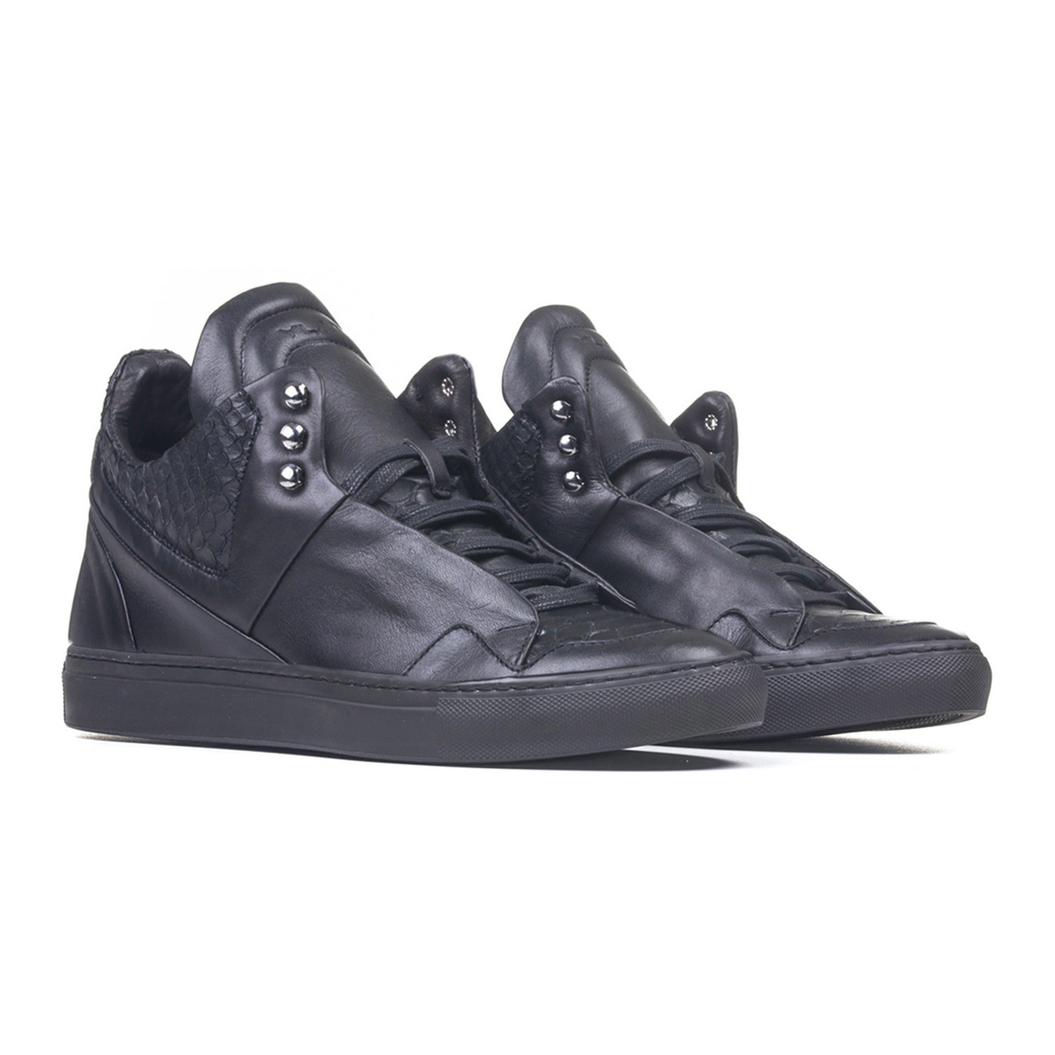 The Poseidon Sneaker is a smart, mid-top take on YLATI's signature "Zeus" shoe. With a premium Italian nappa leather upper replete with eye-catching geometrical cuts, hand-stitching, and gunmetal hooks, this statement shoe is destined to impress.