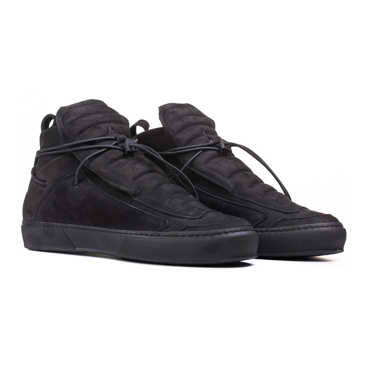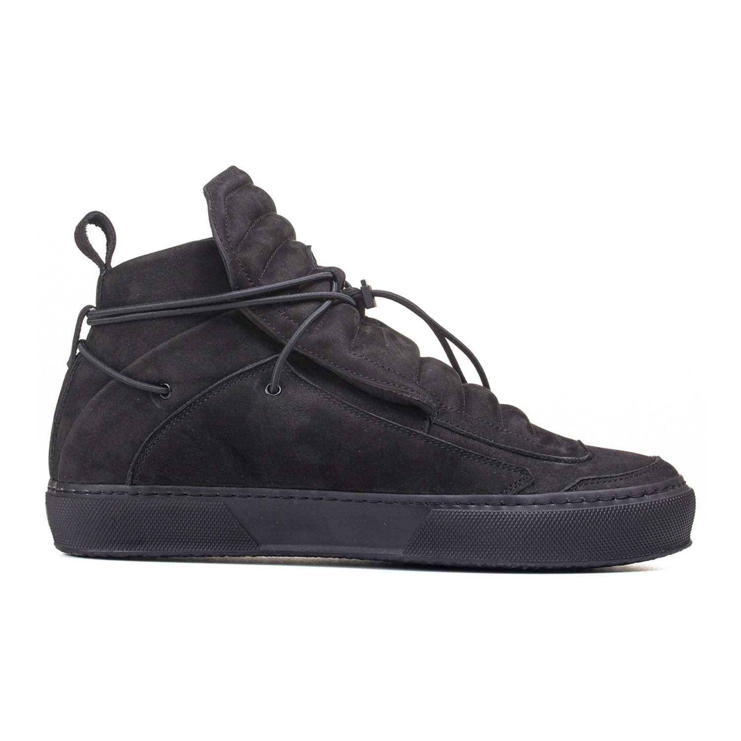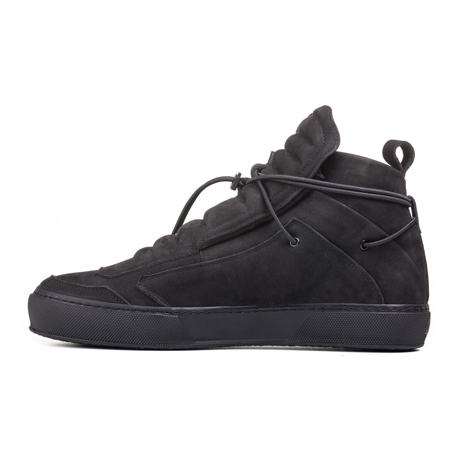 The Ulisse Mid-Top is a futuristic and minimal sneaker made of premium Italian nubuck leather. The padded, reinforced and extended tongue, baby calf lining, and rubber Margom outsole provide extra comfort and easy wearability.