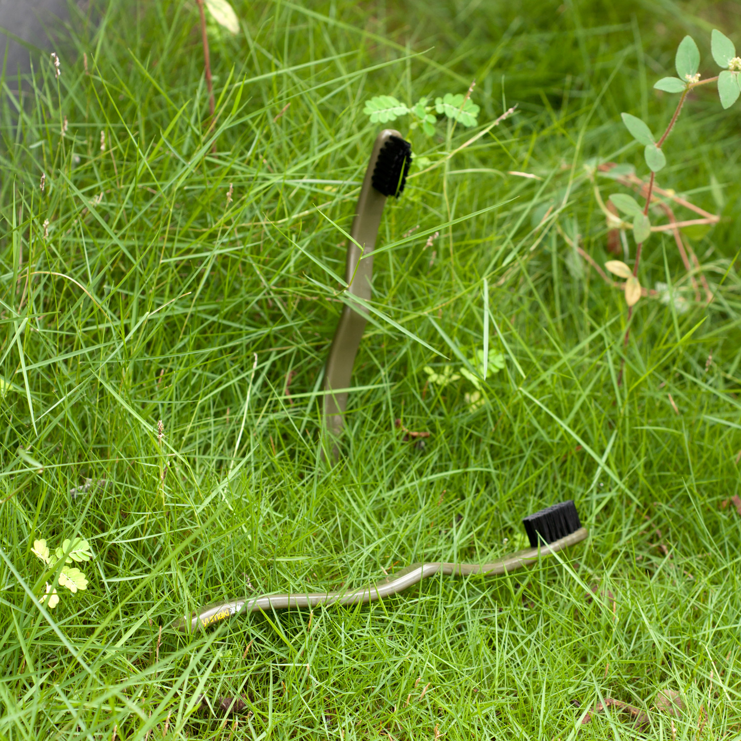 This chic "army" toothbrush has an ergonomic, recycled plastic handle and nylon bristles of medium stiffness for a deep cleaning. You'll love brushing up with this everyday tool.