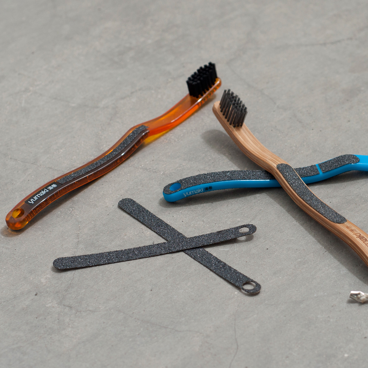 This stuff is top of the line skateboard grip tape that attaches to all Yumaki toothbrushes for a superior handle as you're cleaning. You'll love the efficiency of this sticky stuff.