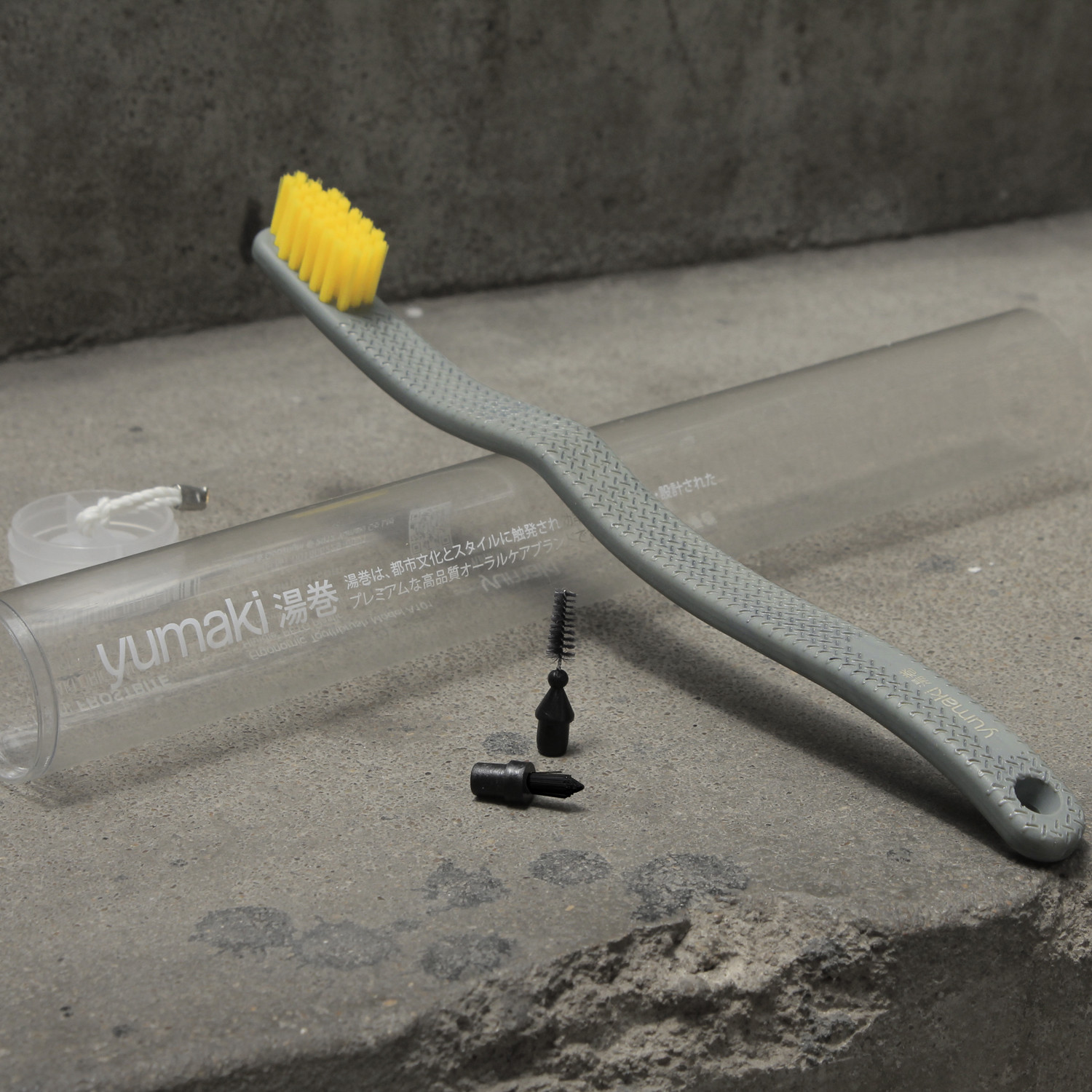 This futuristic toothbrush has medium size nylon bristles and a cement textured handle with a laser grip handle. You'll love washing up with this contemporary piece.