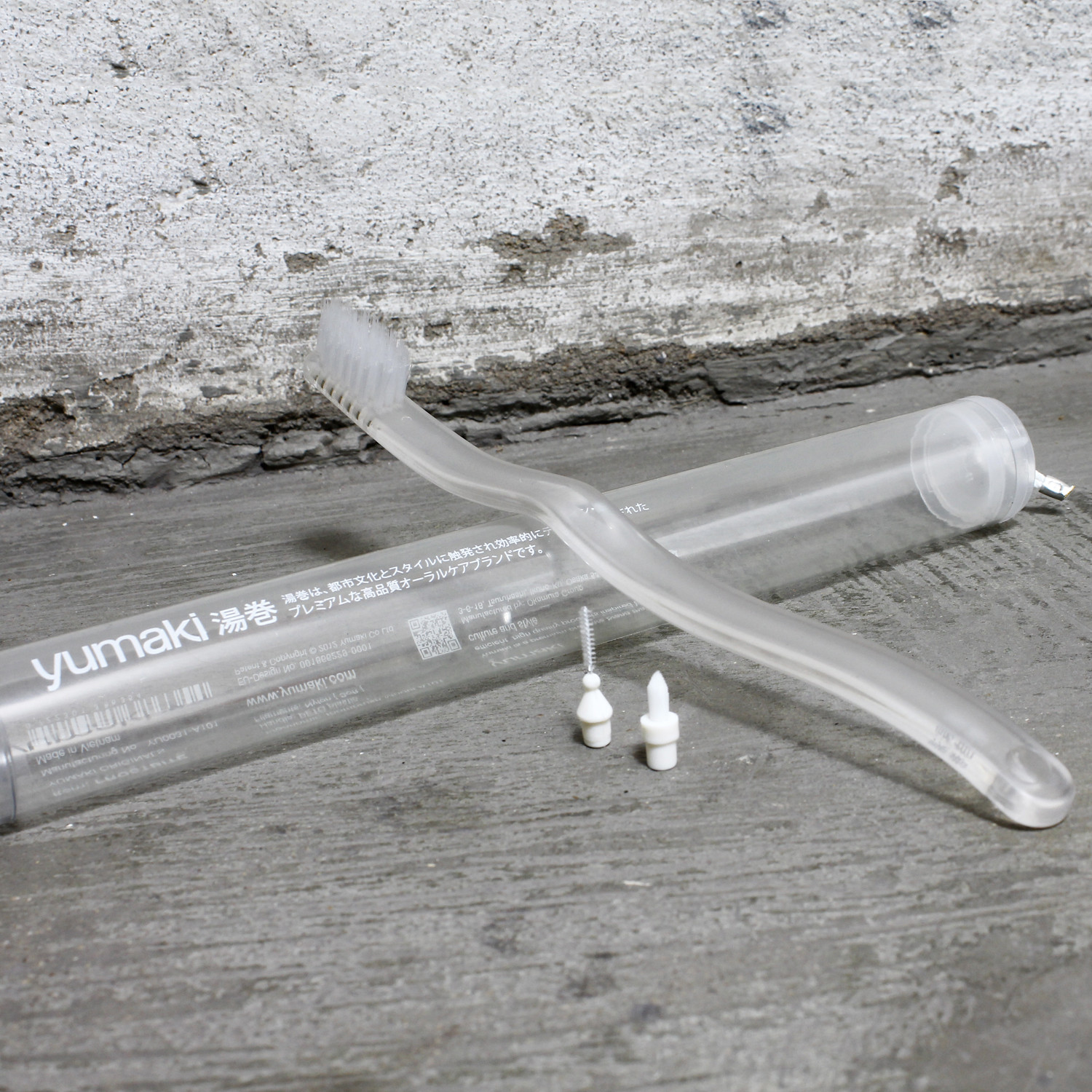 This icy toothbrush has a half matte/ half shiny PETG plastic handle and extra gentle nylon bristles. Stay clean with this chic model.