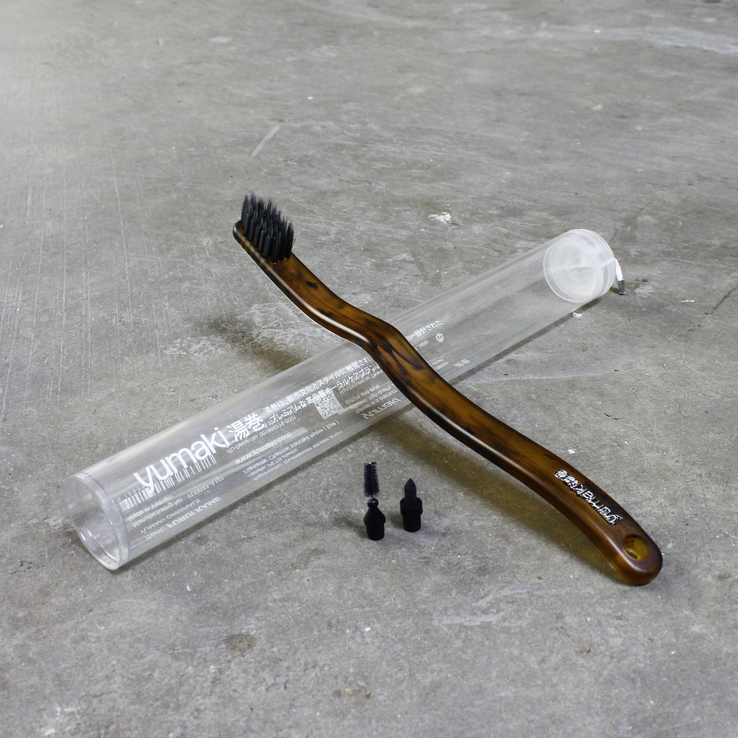 The Furui Kame toothbrush has a faux tortoise handle that's made of PETG plastic and extra gentle charcoal bamboo blended bristles (which are anti-bacterial). This piece is aesthetic and funky for the stylish health nut.