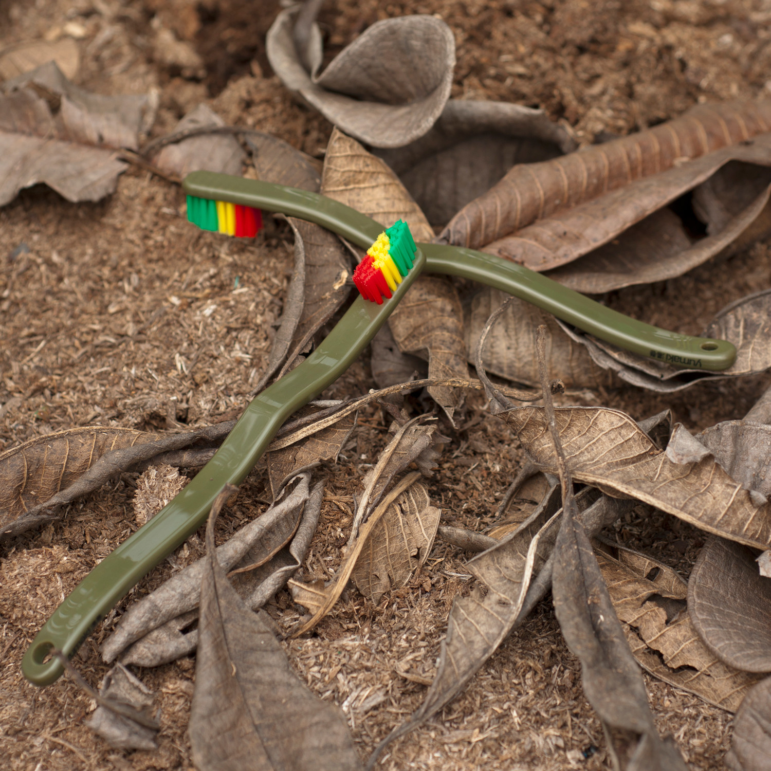 Bob Marley himself would approve of this Rasta toothbrush that's complete with an ergonomic, recycled plastic handle and nylon bristles of medium stiffness for a deep cleaning. You'll love brushing up with this everyday tool.