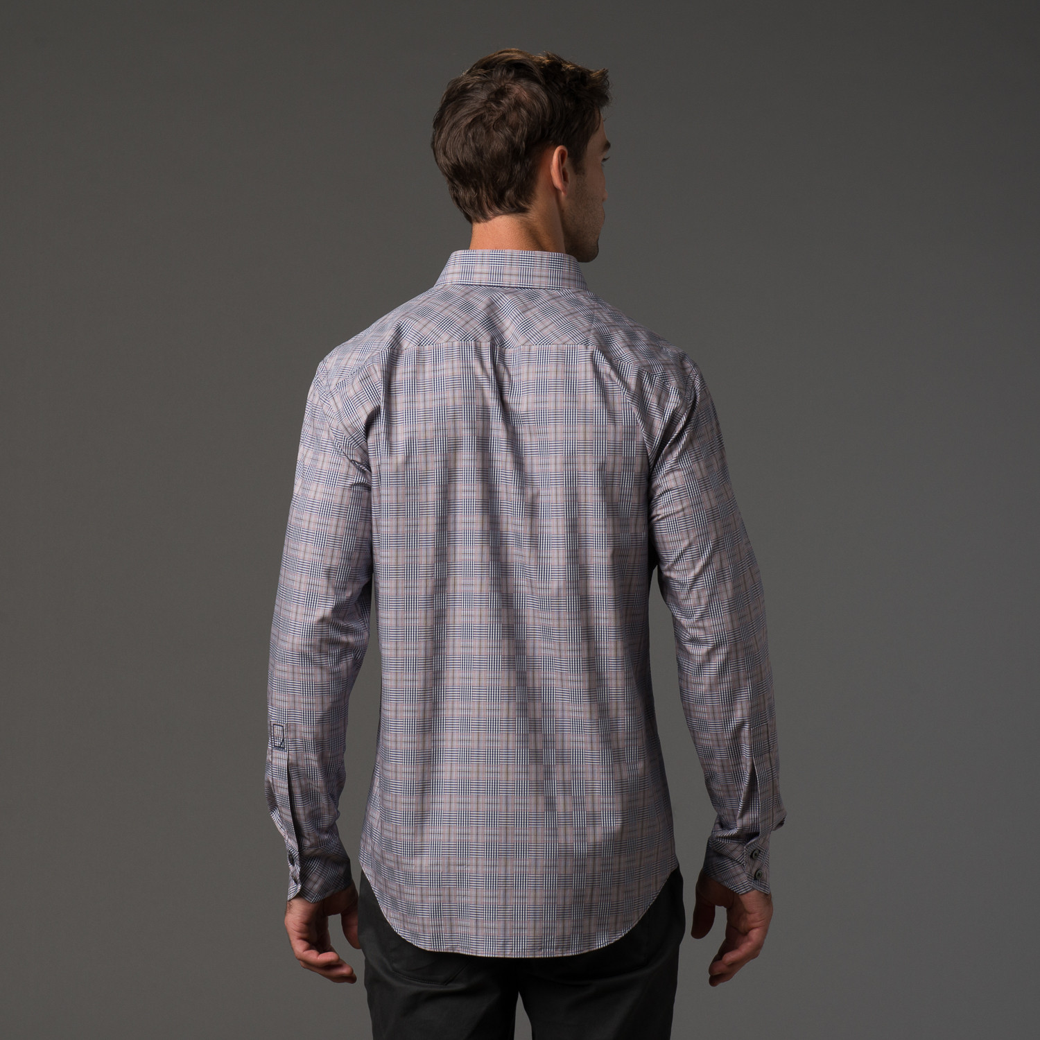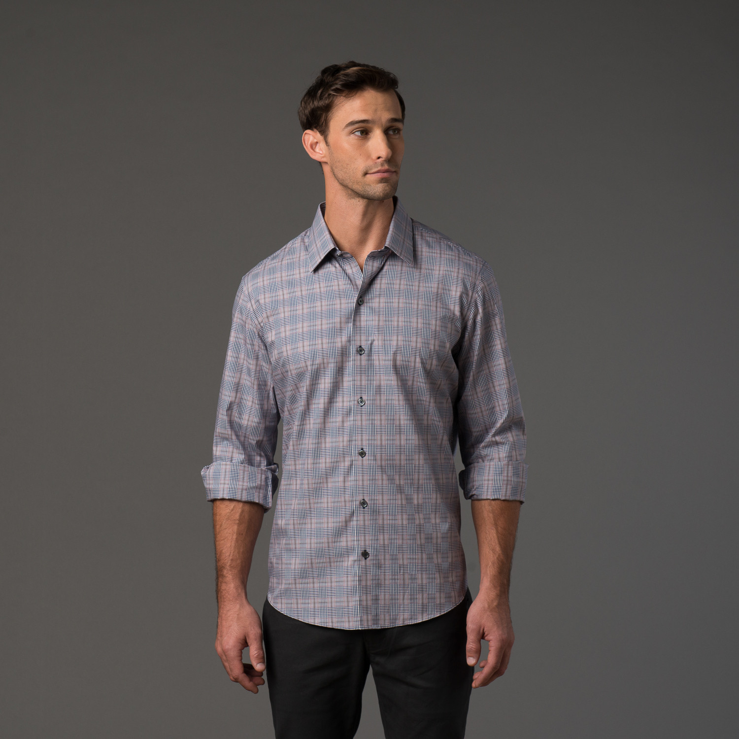 This Ron shirt by Zachary Prell features long sleeves, two button-barrel cuffs, and a grey, red & blue plaid design. Made with the utmost quality, its point collar makes this piece super versatile.