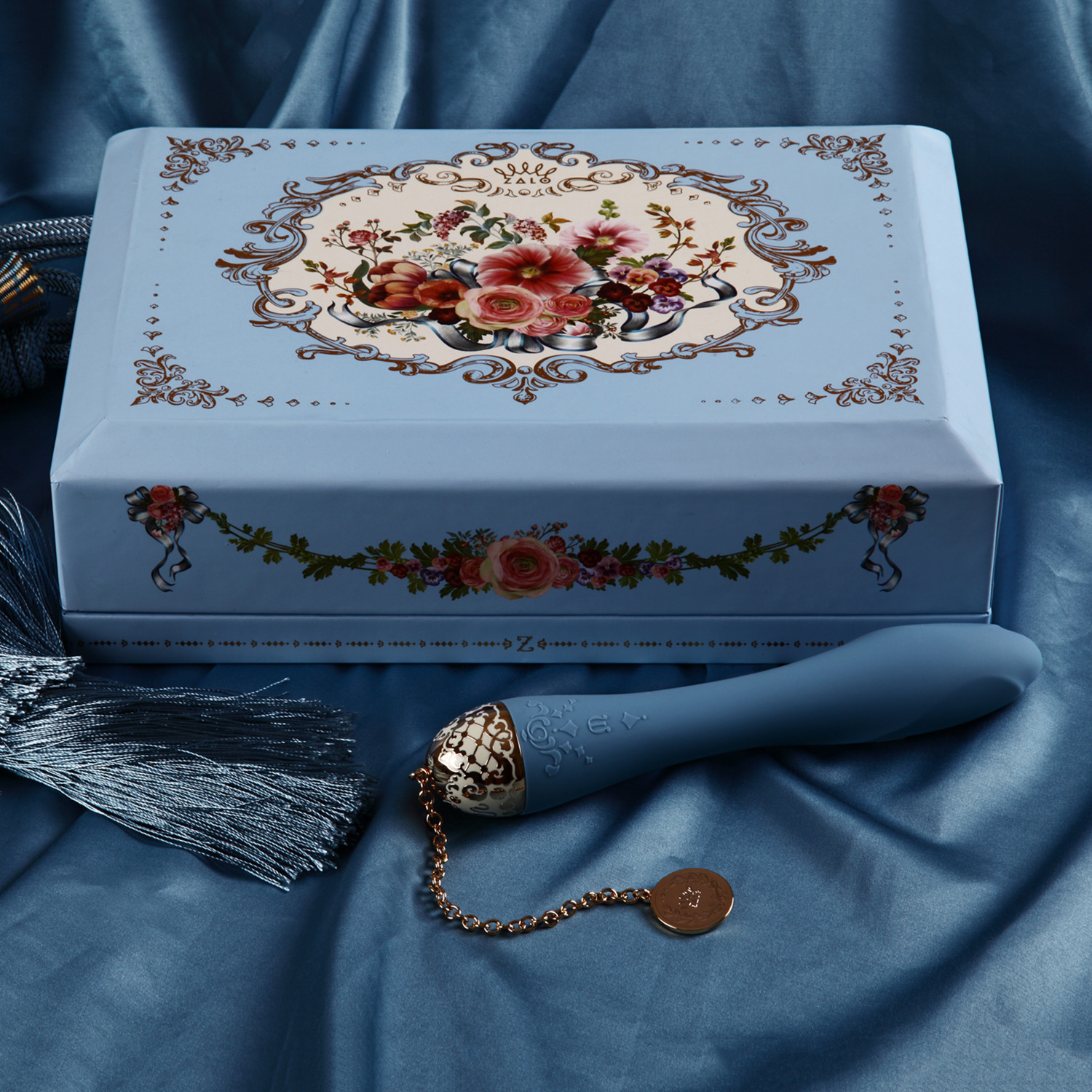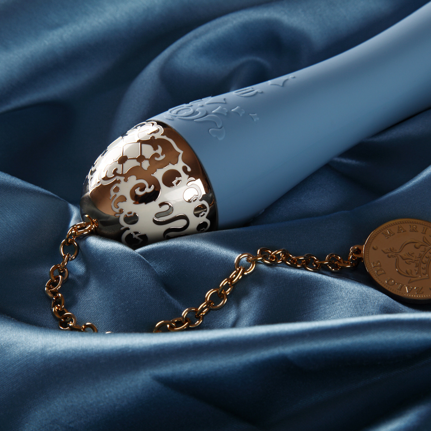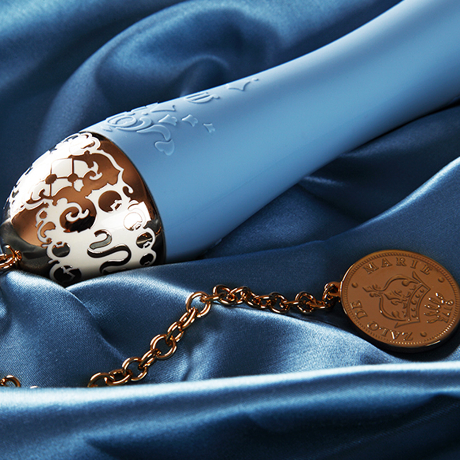 Inspired by the opulence of royalty, this luxurious personal massager is the ultimate combination of elegance and superior functionality. With a super soft tip and an enlarged head to evoke a delicious sensation of fullness, the Marie delivers a deeply indulgent experience. An ultra-high-powered whisper-quiet motor, delicate 24 karat jewelry-grade chain and handcrafted gold tip come together with a velvety Softekâ„¢ coating and eight vibration modes for the ultimate sensory experience. Marie is discreetly packaged in an award-winning French Boudoir-influenced gift box to store your favorite keepsakes and your most intimate toy. And use it with the ZALO app to create exciting experiences with the touch of a finger.