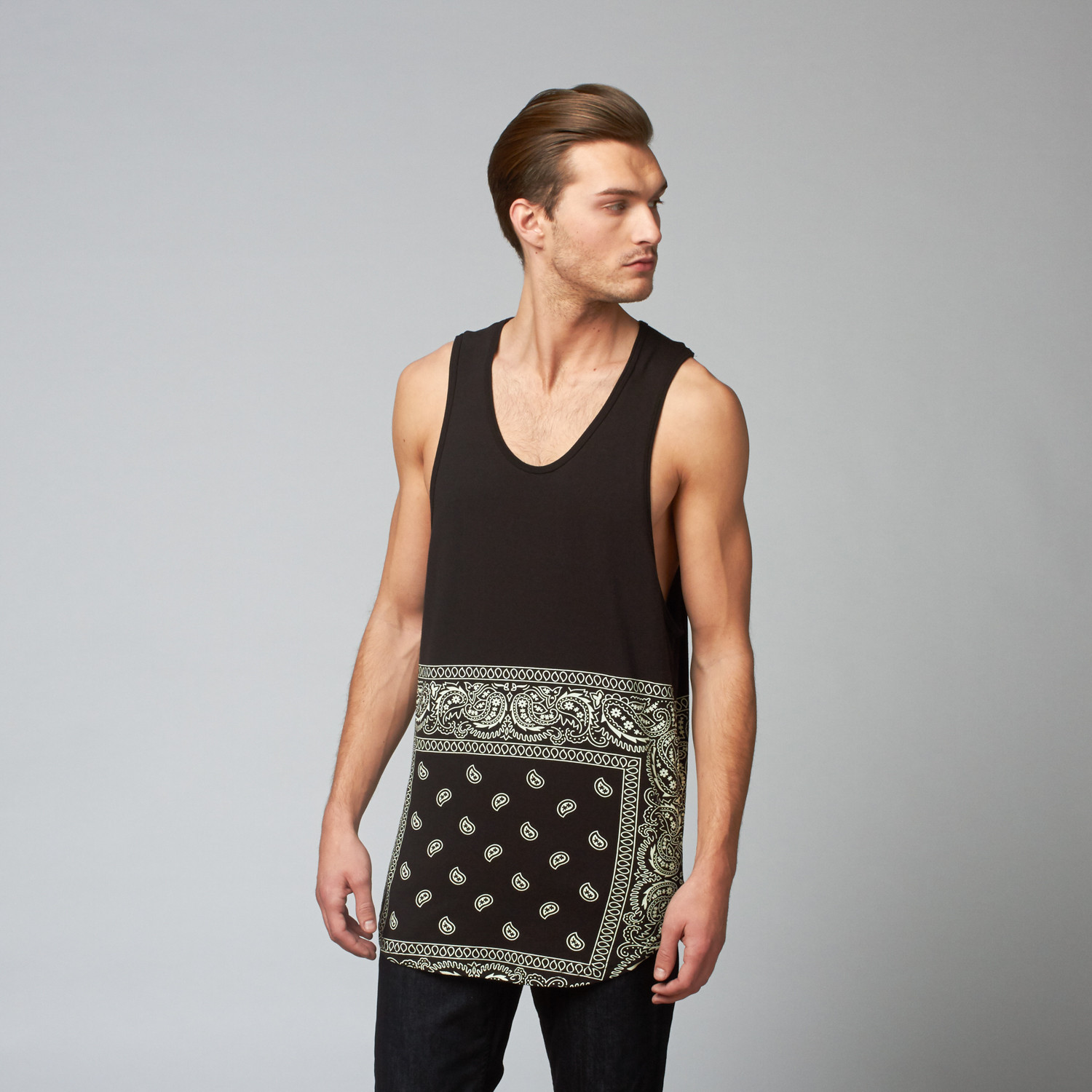 Whether you're strutting down the street or making an impactful style statement, the Bandana Print Tank Top is for you. With a curved, elongated hem highlighted by a blocked bandana print, you'll be the talk of the town — and be comfortable as all get-out.