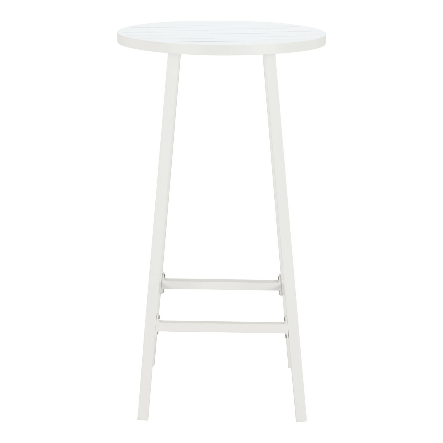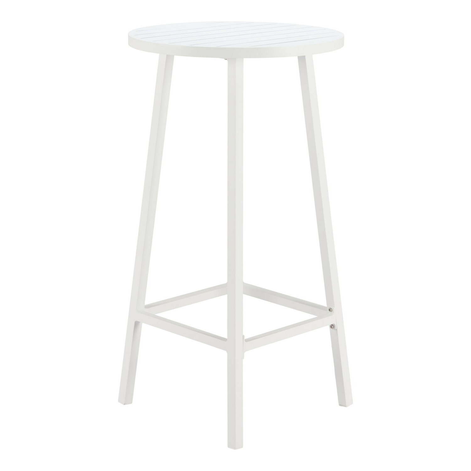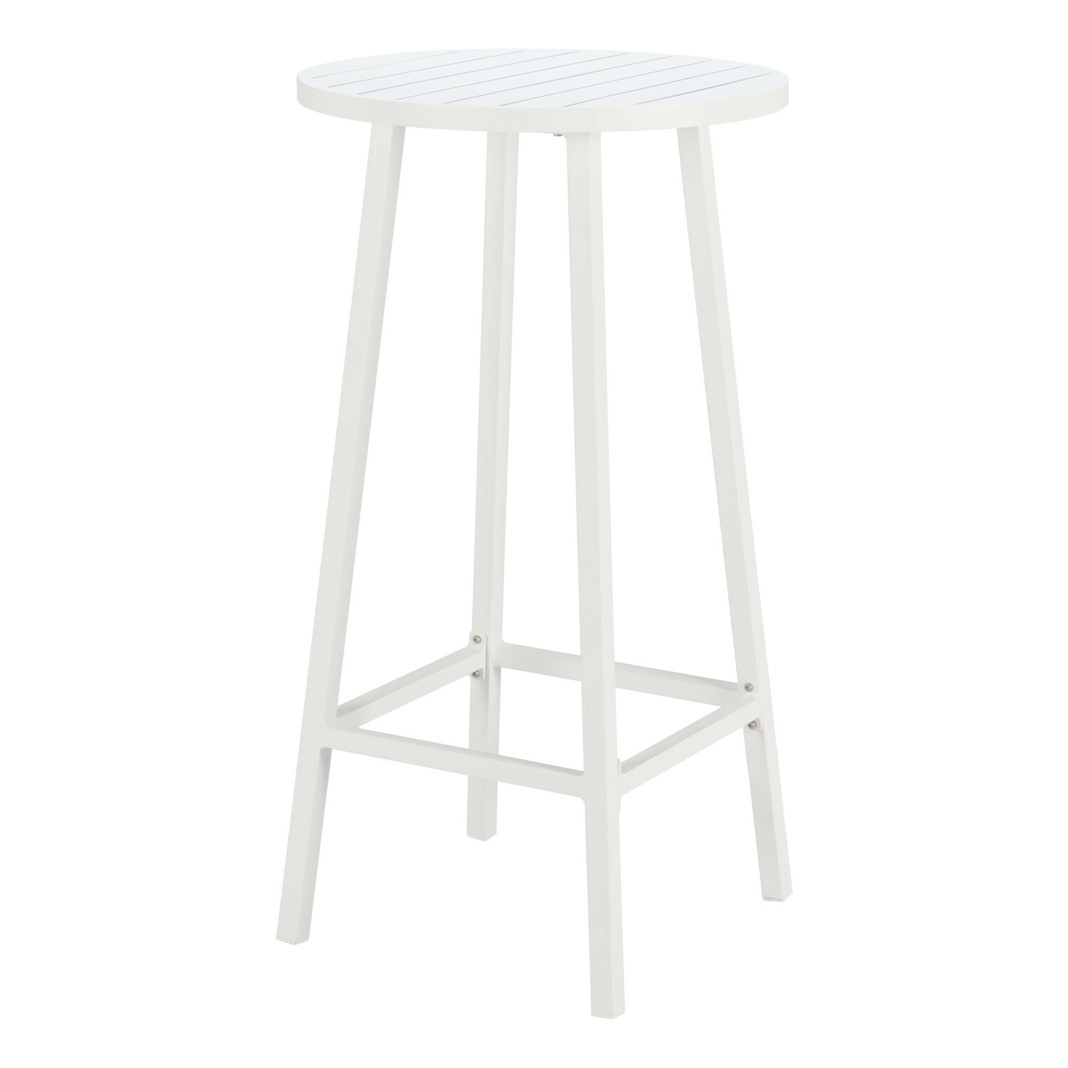 The Ren Bar Table White is constructed from powdercoated aluminum for outdoor use. This table works well in any outdoor environment, residential or hospitality. It is modern in design and with a very functional shape, and also great as event furniture.Materials